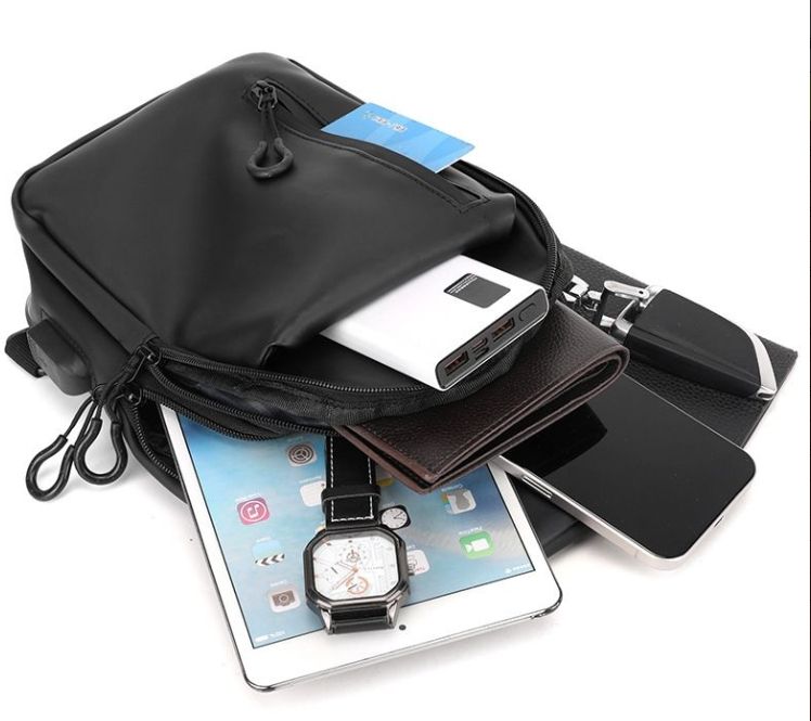 Nova bolsa de peito revestida em couro para homem Bolsa de peito tipo motociclista Bolsa de peito tipo crossbody inspirada em Hong Kong Bolsa de peito masculina